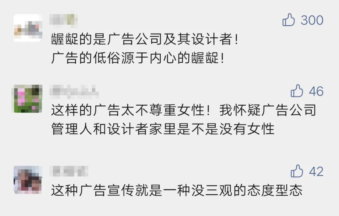 不少网友认为,这句广告语“辣眼睛”、“打擦边球”、“不尊重消费者”。