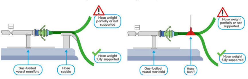 1. 应给连接软管加注系统和气体燃料船管汇法兰的干式接头提供支撑(参考图1示例)。
