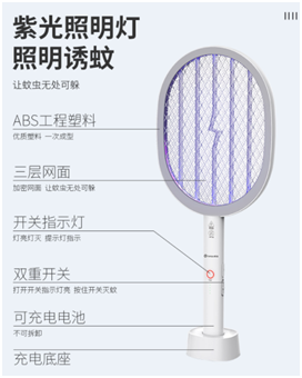 2.挑选具备双重开关设计的电蚊拍,有效防止误触。