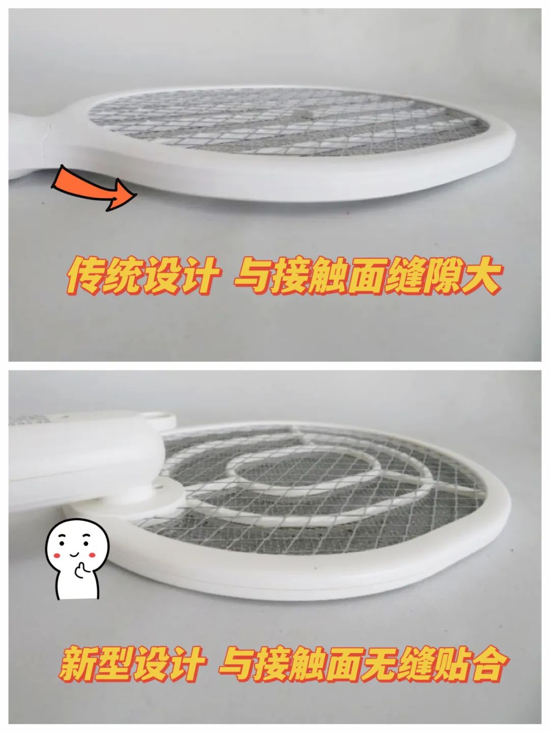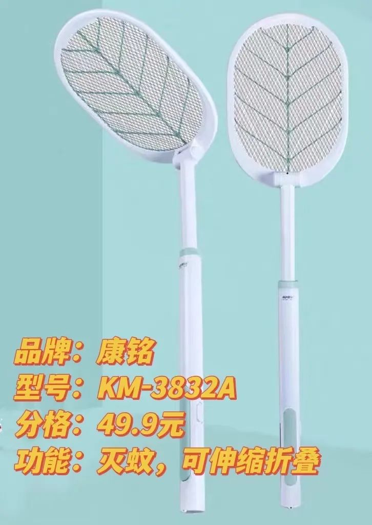体验发现,有4款样品的拍面与接触面几乎无缝贴合,且都是拍面可旋转设计,相较于传统拍面,这种新型设计更能满足用户的各种拍蚊需求,让静止在墙面或地面的蚊虫无处可逃。康铭电蚊拍将可伸缩拍柄和可旋转拍面结合在一起,让高处的蚊虫也再无藏身之处。