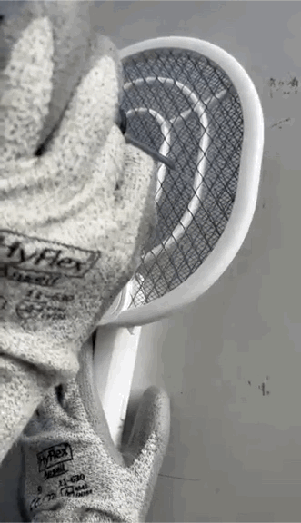 安全性方面,我们检测了电蚊拍网面工作电压、余电消除能力、防护网网孔大小以及开关设计。