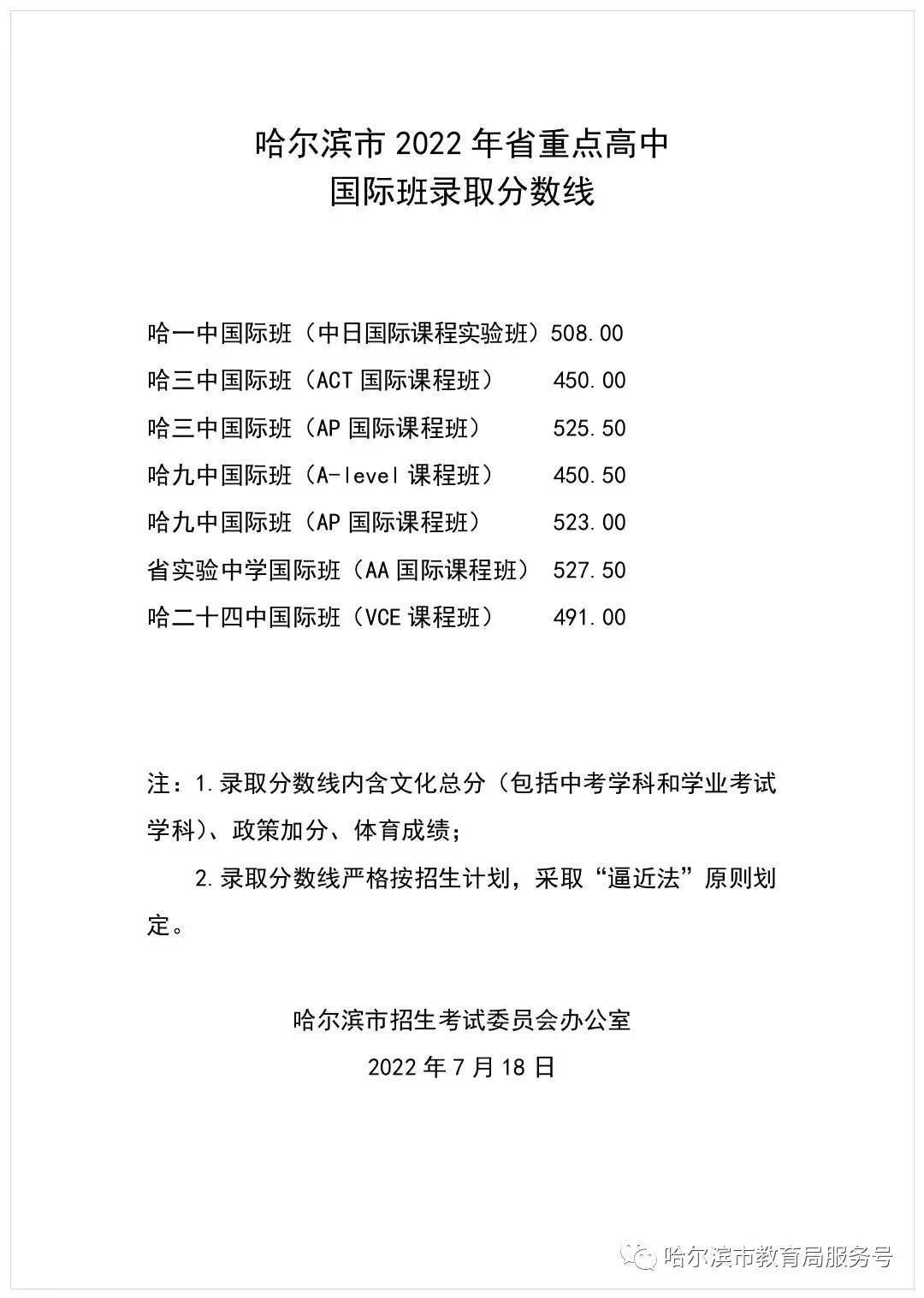 龙头新闻·生活报记者从哈市教育局获悉,哈尔滨市2022年省重点高中国际班录取分数线发布,其中省实验中学国际班录取分数最高,为527.5分。