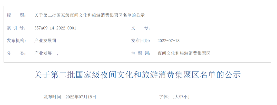 关于第二批国家级夜间文化和旅游消费集聚区名单的公示