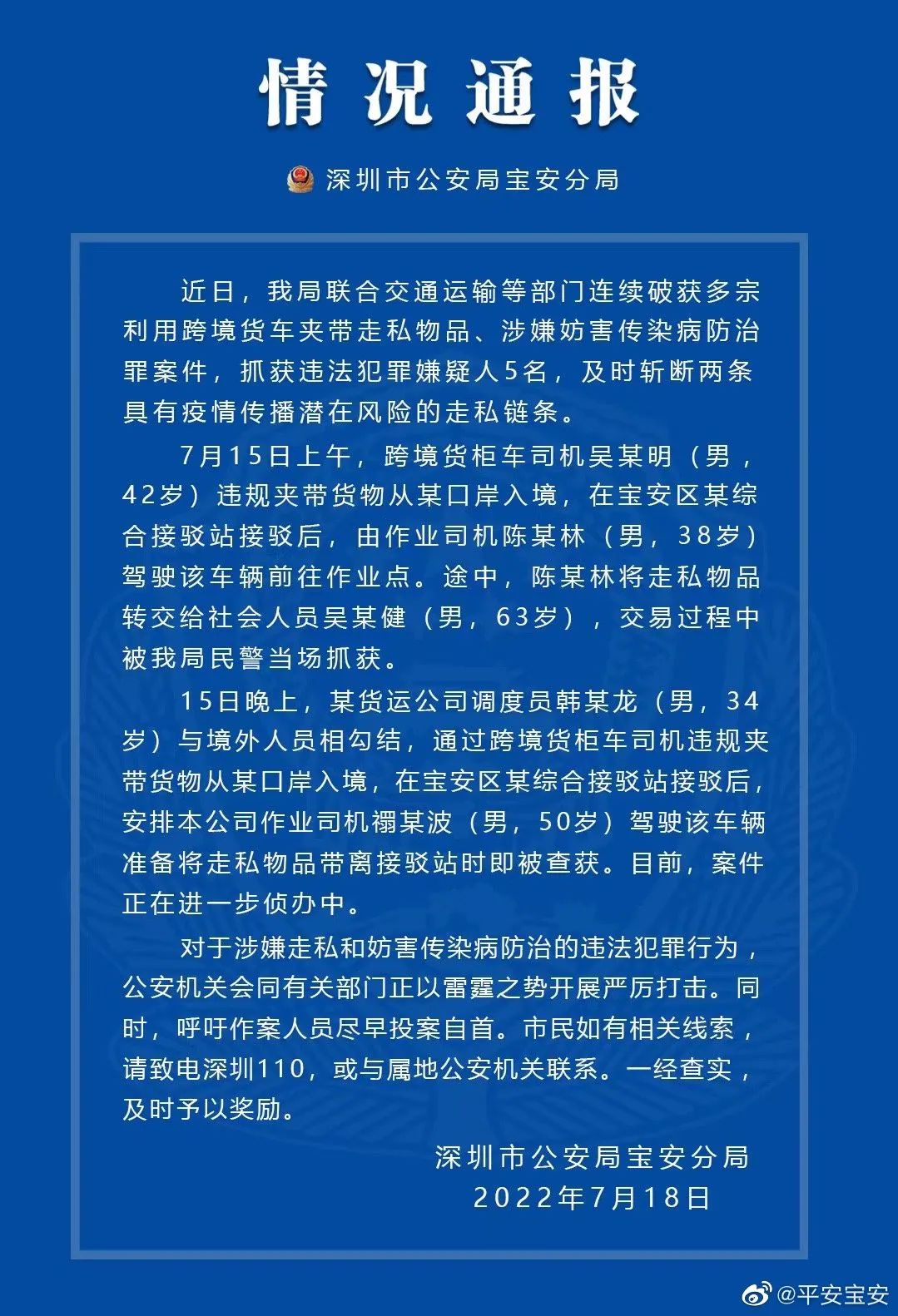 发布一则情况通报