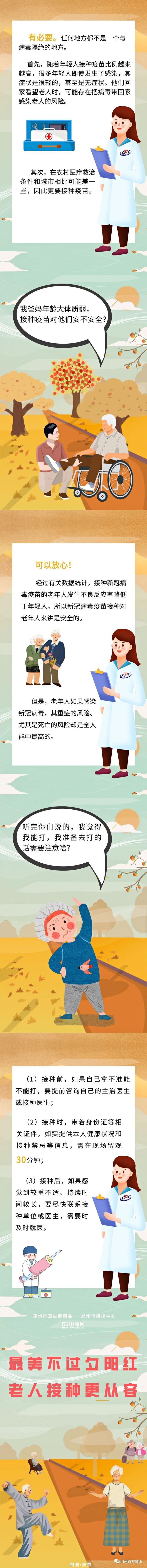 60岁以上的老年人是感染新冠病毒的高危人群,在未接种新冠疫苗的情况下,一旦感染,容易出现重症和死亡,患有高血压、糖尿病也能接种吗?会不会有啥副作用?不经常出门还需要接种吗?郑州市疾控中心专家提醒您:老年人接种疫苗很有必要!并且,以下这些情况也都能打。