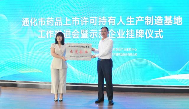 7月18日上午,通化市药品上市许可持有人生产制造基地工作推进会暨示范企业挂牌仪式在通化万通药业举行,切实推动通化市药品上市许可持有人生产制造基地建设。