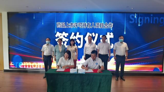 会上现场为万通药业颁发通化市MAH生产制造基地示范企业牌匾。随后,万通药业与巨仁堂药业签订复方氨酚烷胺胶囊和人工牛黄甲硝唑胶囊两个品种转让合作协议。