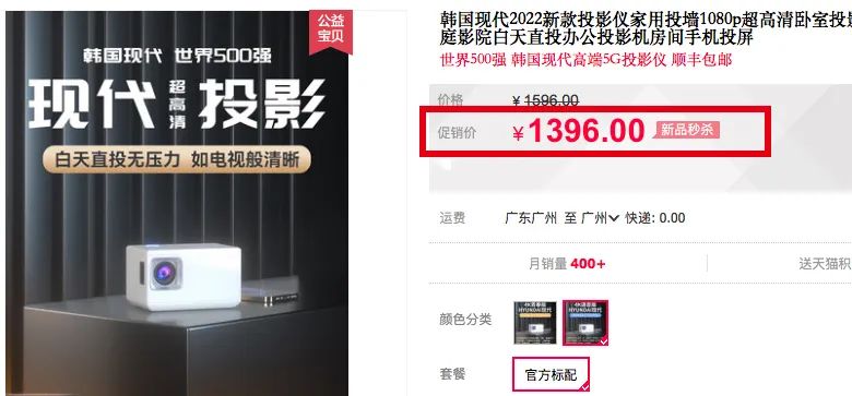 官网1396,现在只要599,比官网半价还便宜,立省797元!送幕布+支架。