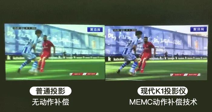 我们用普通投影仪和它做个小对比,不用我说,你也都看出区别。每个细微动作,都能被清晰捕捉到,犯规不怕耍赖皮