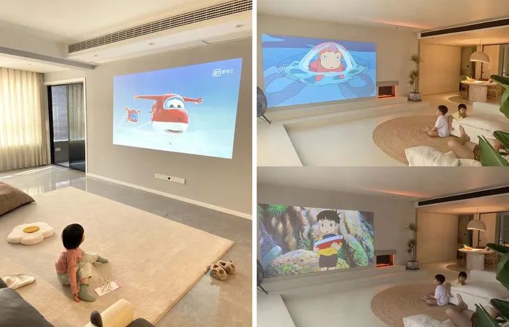 带娃家庭,不易伤眼的投影大荧幕,还能省去哄娃的闹心,一家其乐融融。