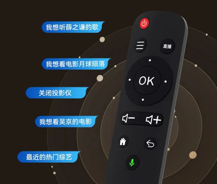 支持语音遥控 | 可以用遥控直接按键操作,遥控中间还有语音按钮,按住便可以语音操控,爸妈都能快速上手。