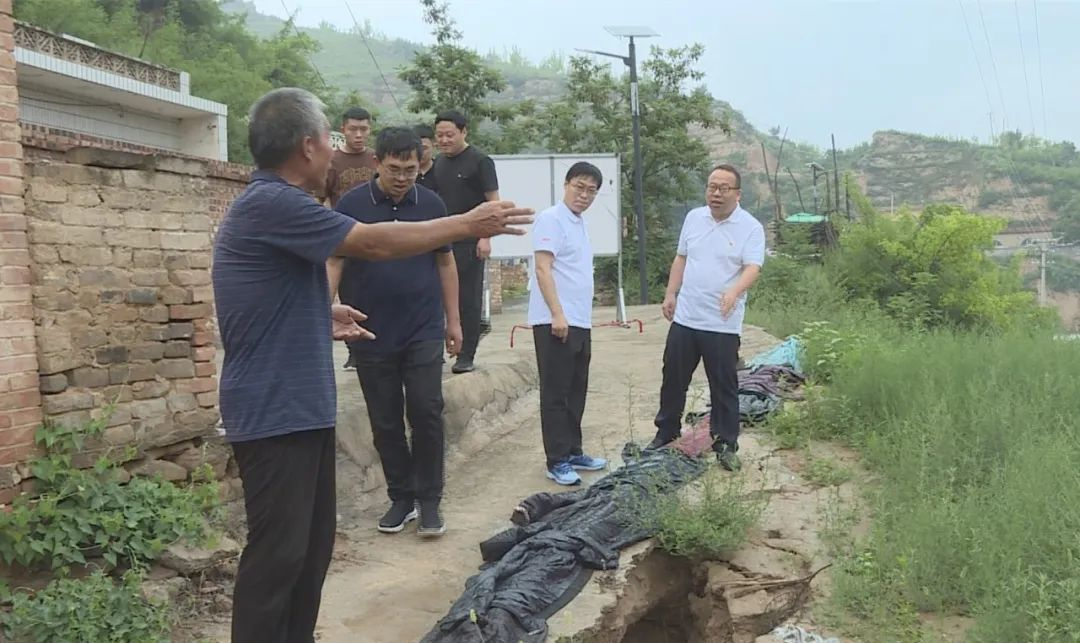 在蓬门村,马科峰实地查看了一处因大雨冲刷形成坑洞和地面裂缝,有坍塌风险,直接影响道路下方村民生命财产安全的地质灾害隐患点,详细听取了群众介绍和意见建议,并了解了地质灾害隐患发展变化趋势及防治工作情况,要求将村民及时转移到安全地点,并及时对受损路面和坑洞进行修复、加固,疏通排水,避免再次形成风险隐患。
