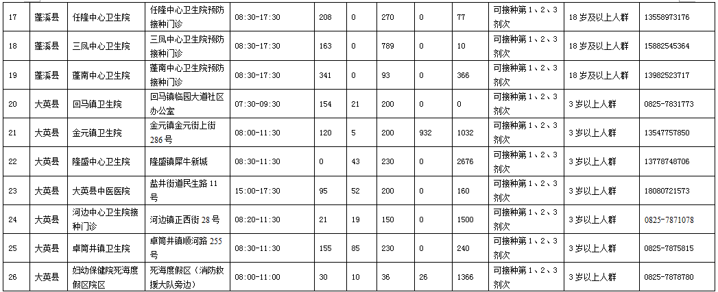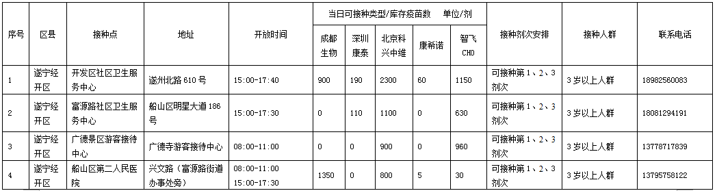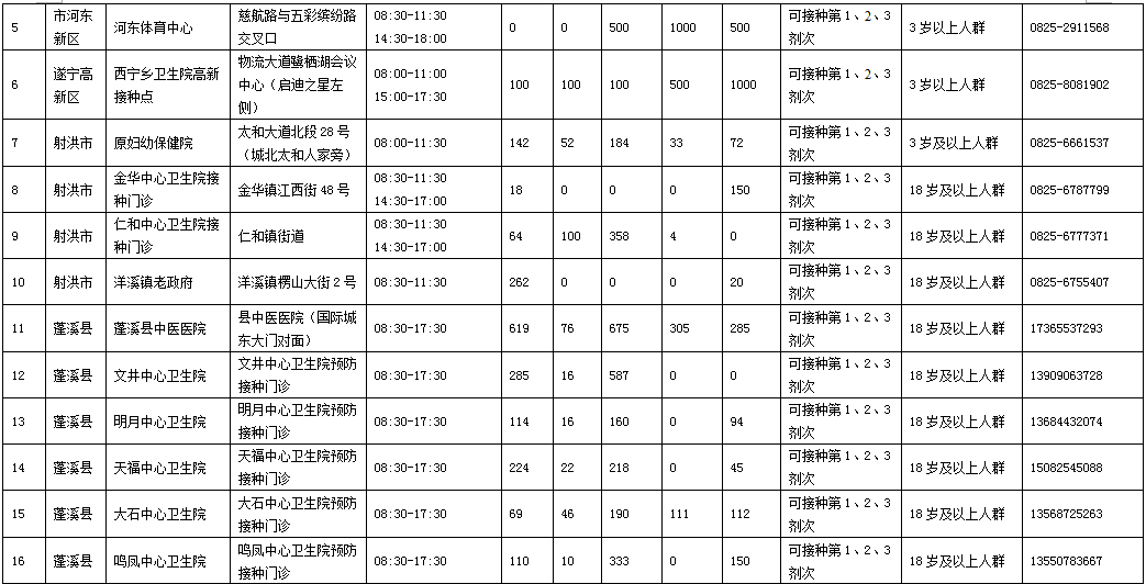 为方便群众接种,现将遂宁市7月19日新冠病毒疫苗接种点安排公布如下,本批次疫苗主要用于辖区符合接种条件的人群接种。