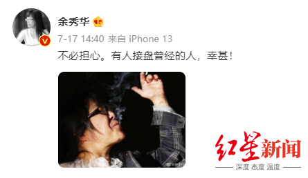 7月17日,余秀华再次发布微博称,“不必担心。有人接盘曾经的人”,疑似暗示杨槠策已牵手其他人。