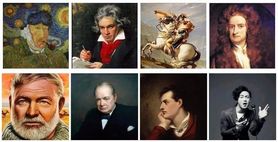 再比如,双相情感障碍,我们所谓的天才病,就有很多耳熟能详的名人,贝多芬、海明威、梵高、拿破仑、舒曼,他们照样在自己擅长的领域发光发热。