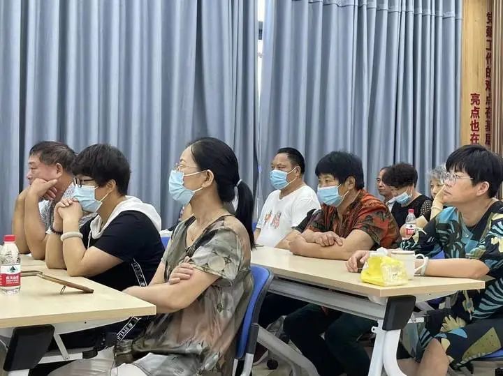 除了社区邀请来的老人,前来中心办事的老人也悄悄入座,认真地看了起来。“案例的受害人和我年纪差不多,我也想听听。” 一位奶奶指着PPT说。