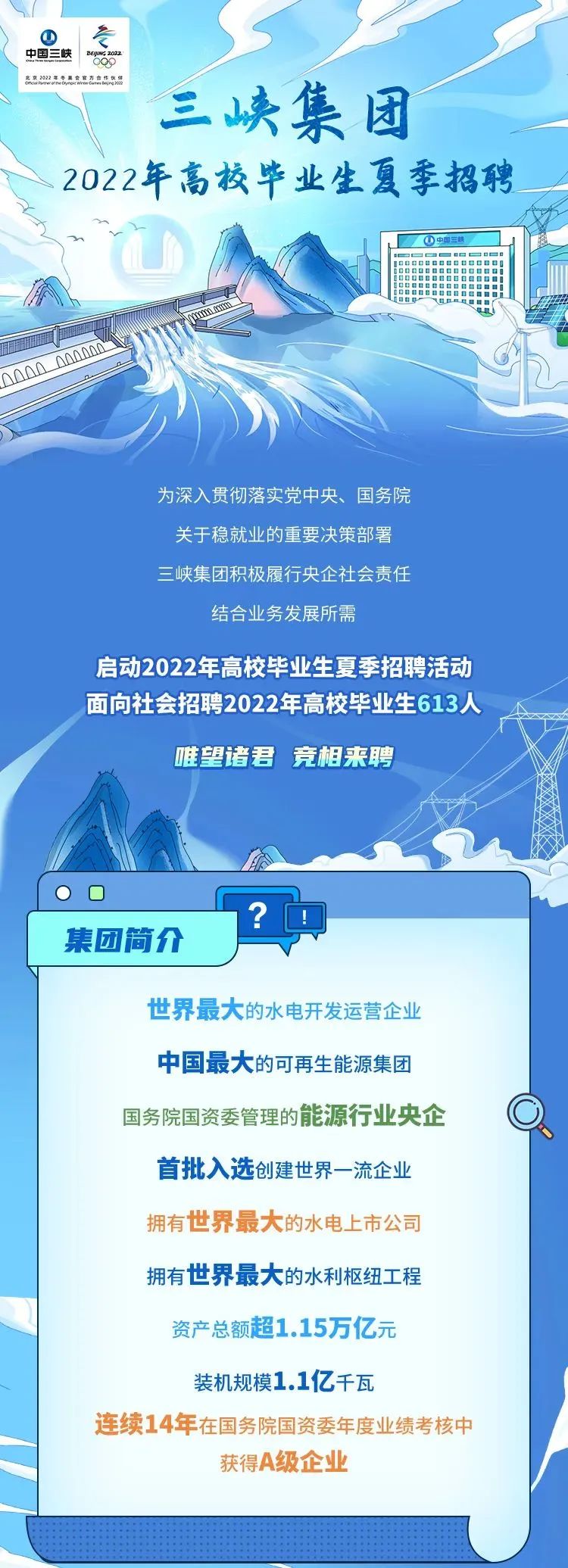 【校招】中国三峡集团2022年高校毕业生夏季招聘开启