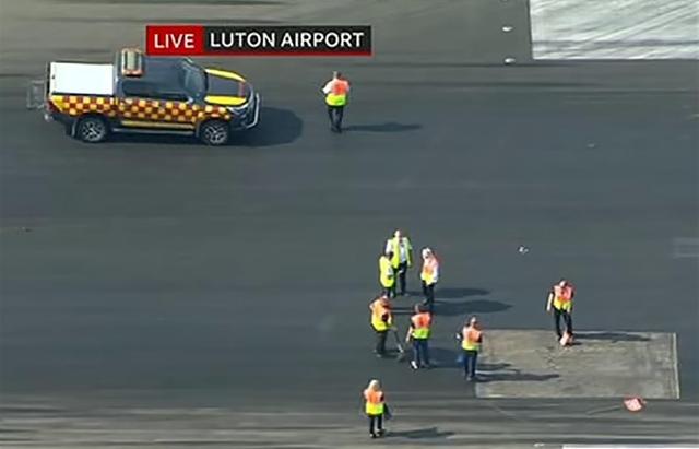 卢顿机场飞机跑道融化(图片来源:视频截图)