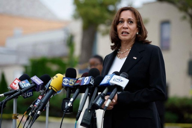 美国副总统哈里斯到访“独立日”枪击案现场。(资料图)