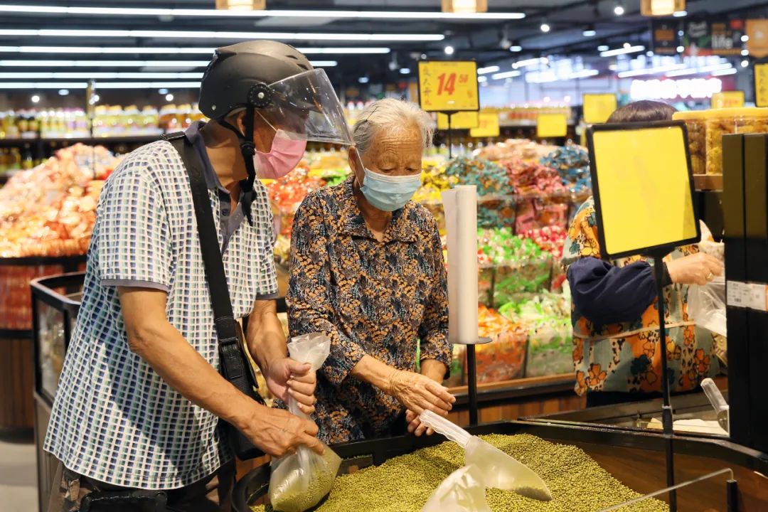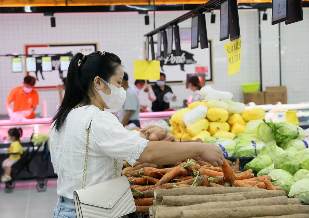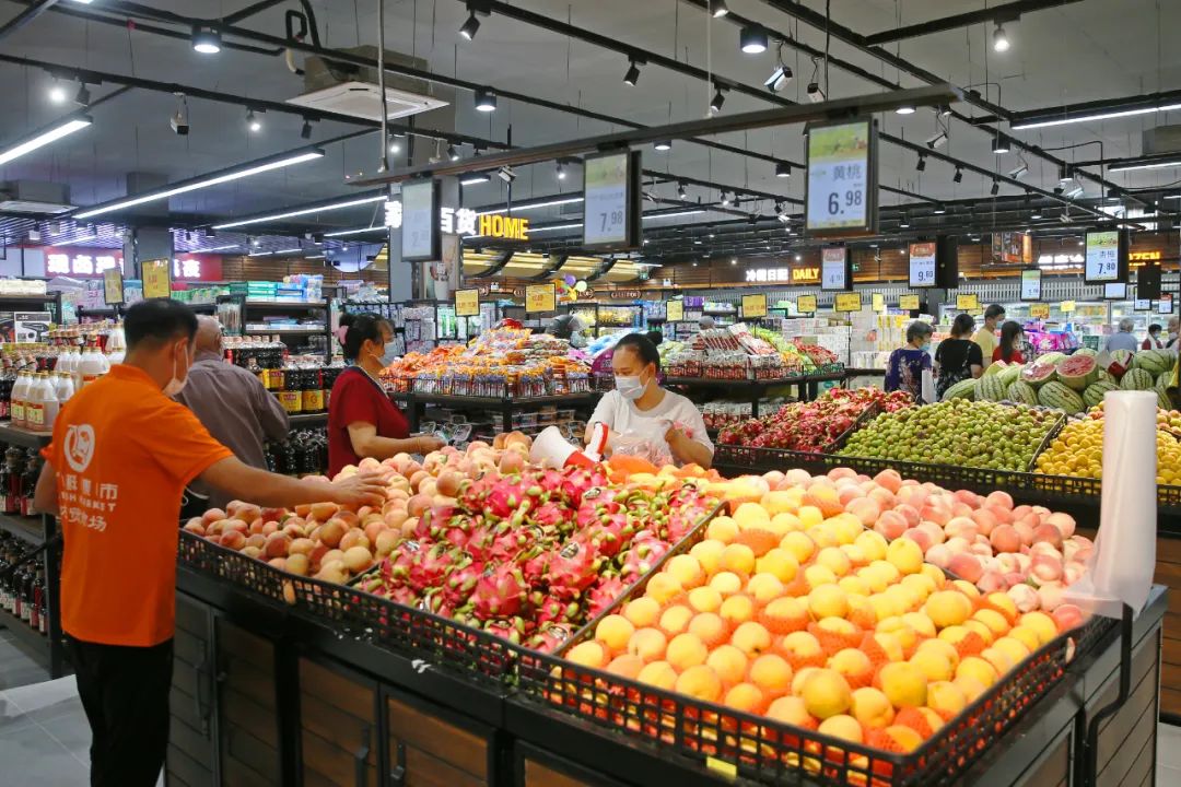 记者看到,塔汇农贸市场布设了“数字哨兵”“场所码”,居民按照防疫要求有序进入。市场内干净整洁,摊位上的生鲜产品新鲜诱人,一排排货架整齐排列。“现在选择性更多,环境也比以前舒服,夏天有空调吹着,可以在这里慢慢挑选。”居民顾先生说,以前在这里只能买到蔬菜、猪肉和水产品,现在可以买到水果、调味品,品种丰富多了,“如果来得早,还可以在农民自产自销区买到本地农产品。”