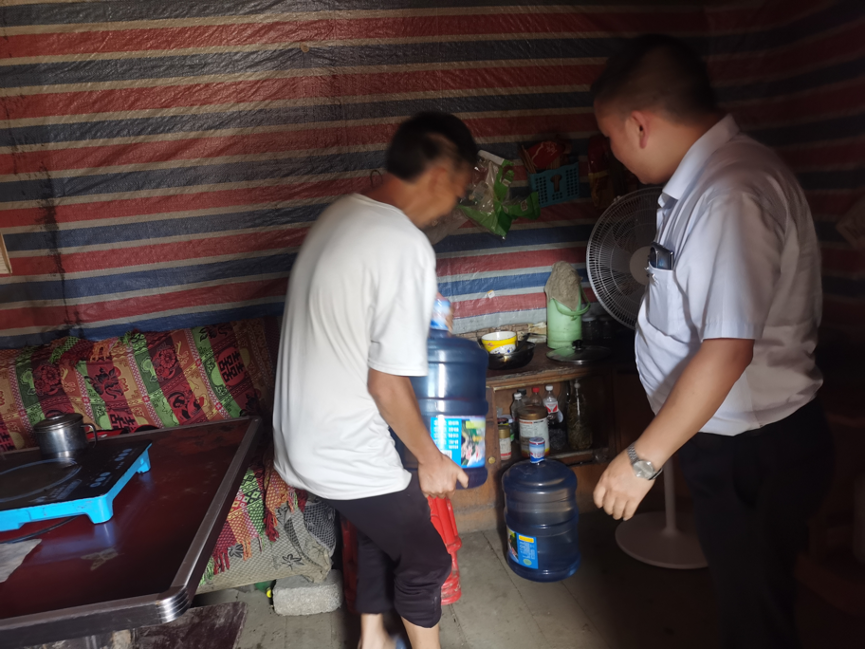 在场的党员同志商量后认为,想解决这一问题首先要解决当下存在的用水问题,其次维修水管让自来水顺利入户,安排好之后,立即联系当地桶装水供应商,与姚寨长一起拉水、送水到各村民家中。
