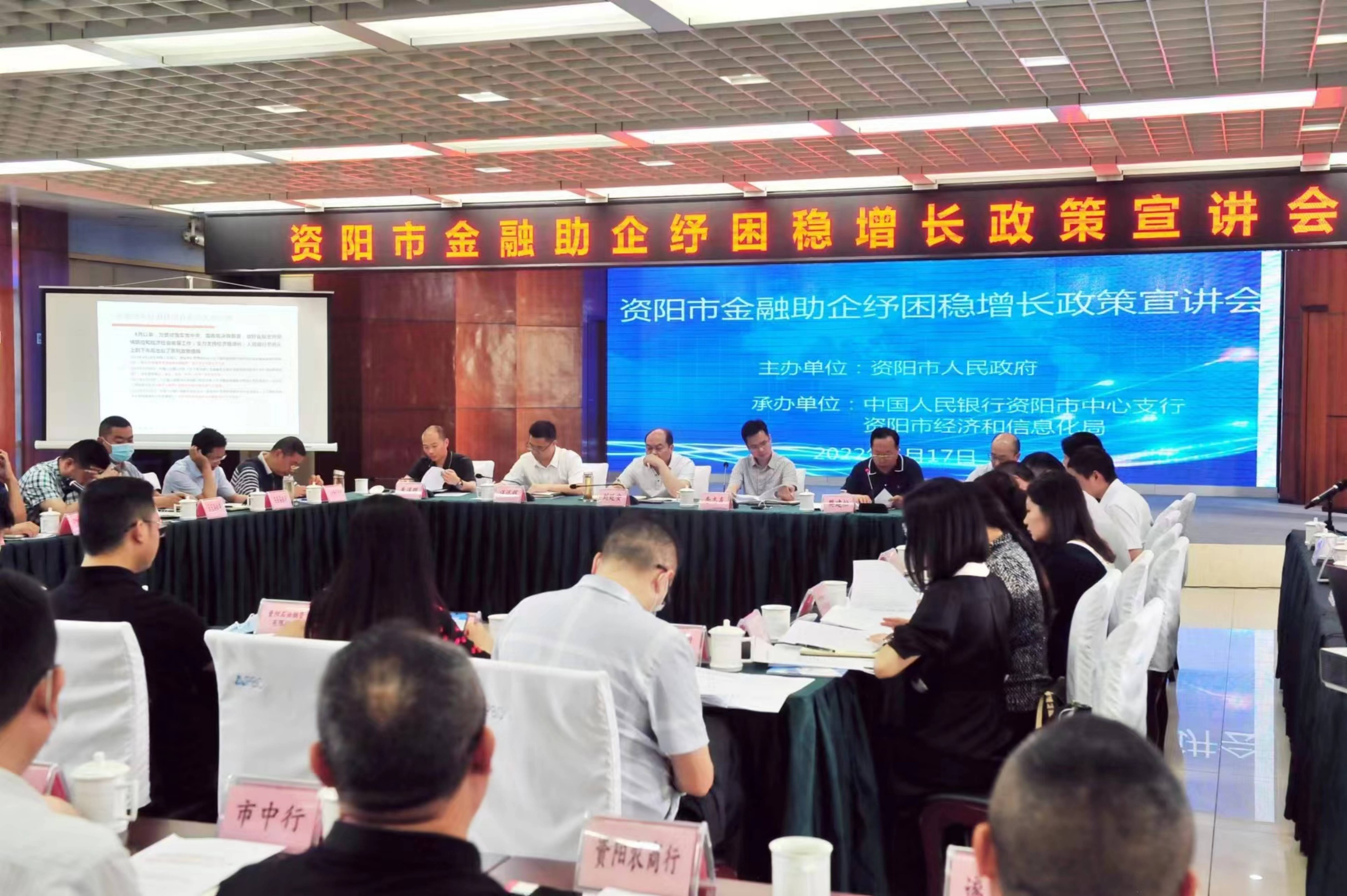 该行及时出台资阳市金融助企纾困稳增长12条举措,从信贷稳存量扩增量、加大政策工具运用、突出对重点领域的金融支持和创新基础金融服务等4个方面,精准发力、靠前发力,力促资阳经济稳定增长;组织辖内16家银行机构及时梳理金融支持政策、特色金融产品等,编发《资阳市金融助企纾困稳增长政策及产品手册》(电子版)及明白卡,通过金融机构网点、系统员工、党政领导、职能部门、新媒体、社会公众等多渠道、多形式广为发布、推送,让市场主体运用金融政策、选择适合的产品,稳固生产经营活动;督促各银行机构落实“一把手”负总责的金融助企纾困稳增长工作机制,由行领导带队,主动联系经济主管部门,进园入企进村入户,搞好金融需求摸排、银企交流、融资对接、解难助企等,细化完善贷款投放内部考核激励机制,务实高效抓好金融支持政策的实施。