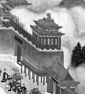 那么这种样式是何时转变为“攒尖顶”的呢?可以继续在宫廷绘画中寻找答案……