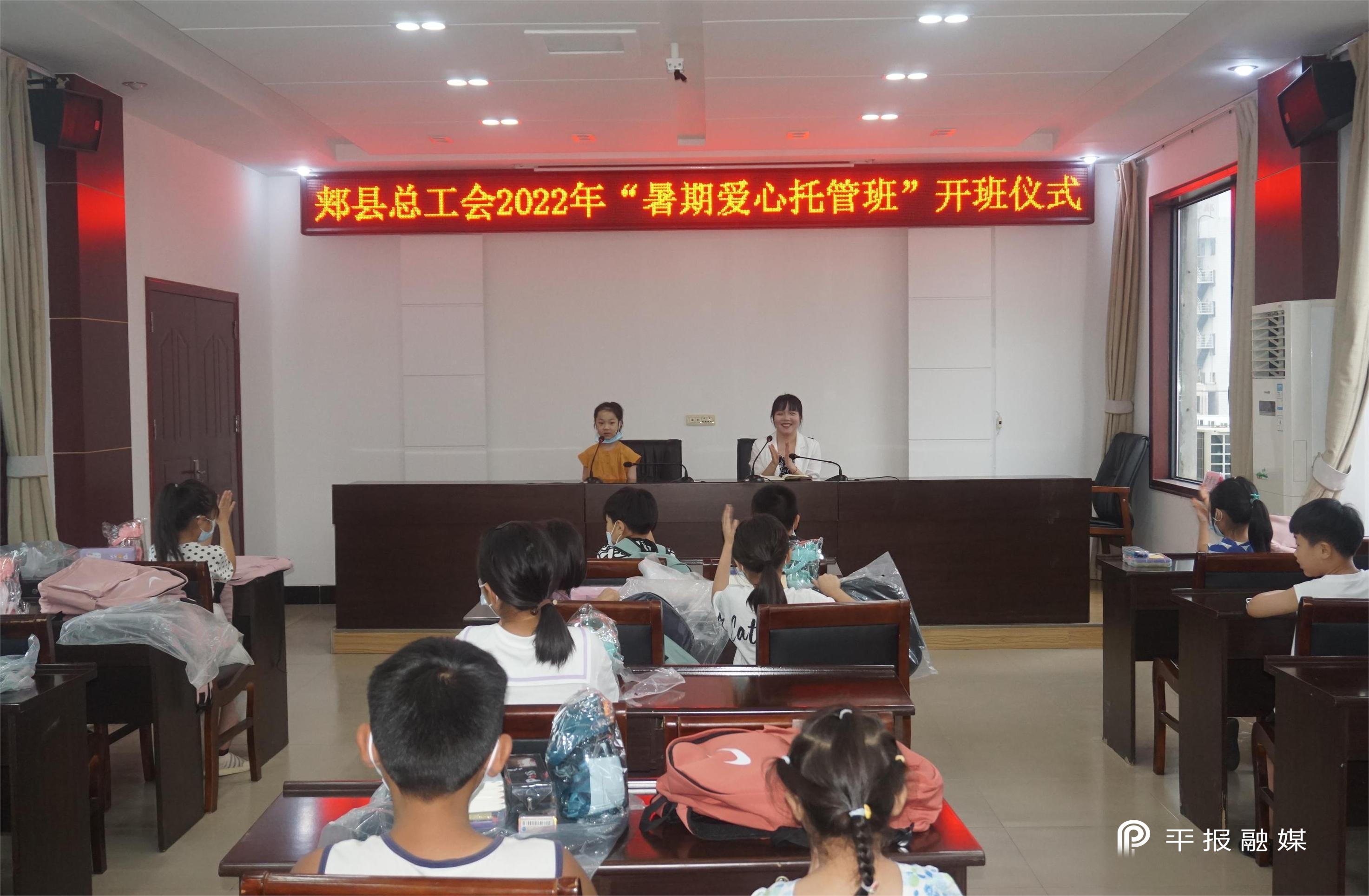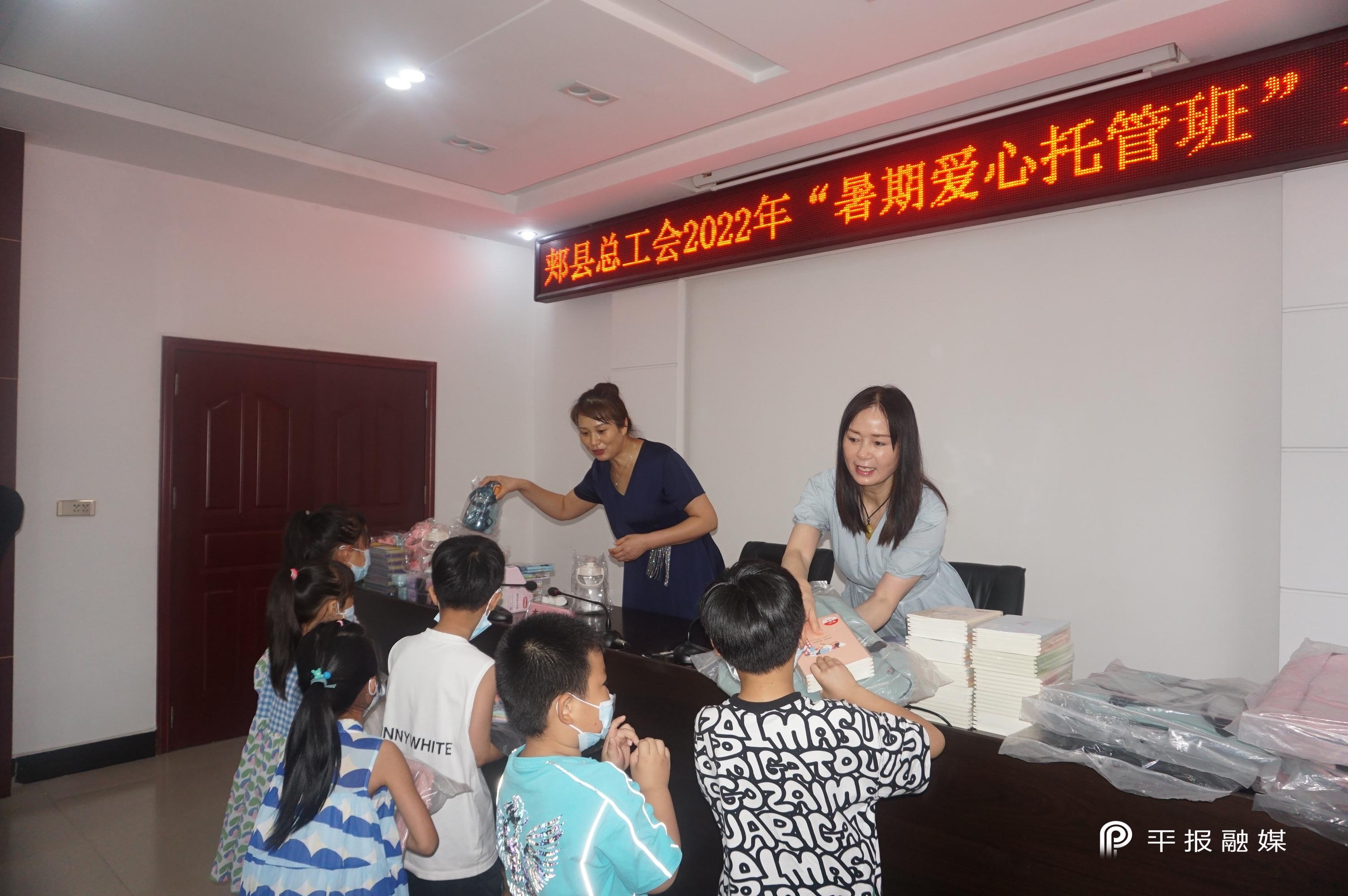 当天,郏县总工会职工子女2022年暑期爱心托管班开班仪式举行,33名职工子女参加,所有参加托管班的学生均获赠了书包、彩笔套盒、水杯等爱心大礼包。据介绍,托管班计划招生6-12岁的孩子100名,设4个培训班,开设作业辅导、美术、音乐等课程。