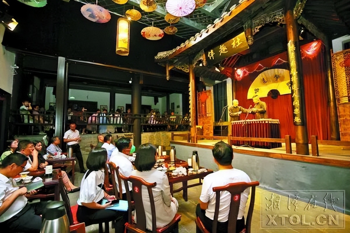每当夜幕降临,在窑湾历史文化街区,湖南本土相声团体“伴趣社”为湘潭市民带来欢乐盛宴。(记者 李新辉 摄)