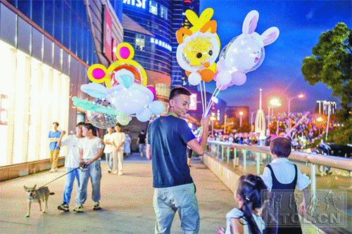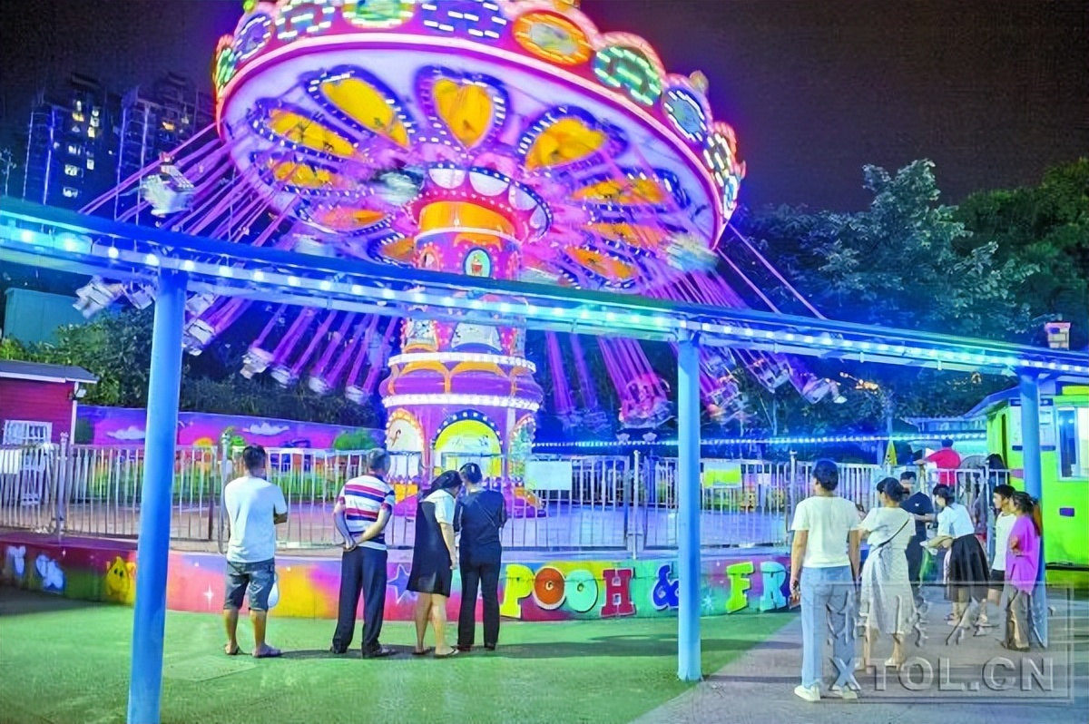 夜幕降临,湘潭县湘江外滩夜色迷人,人流如织,已成为市民夜游的好去处。(记者 方阳 摄)