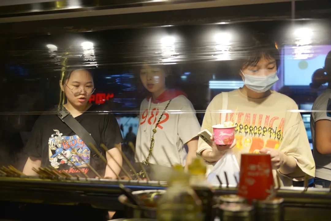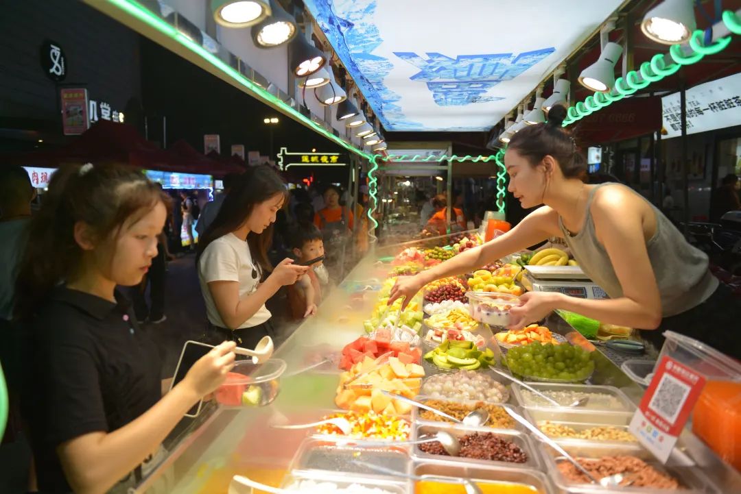 在岳塘区,建设路口商圈步步高广场是市民夜间购物的集中点,广场一侧莲城夜市成为市民的打卡地,这里的特色就是“吃”。烧烤、麻辣烫、关东煮、臭豆腐、烤肠、水果、奶茶、冰激凌等各种小吃,一应俱全,可以满足绝大部分的味蕾需求。