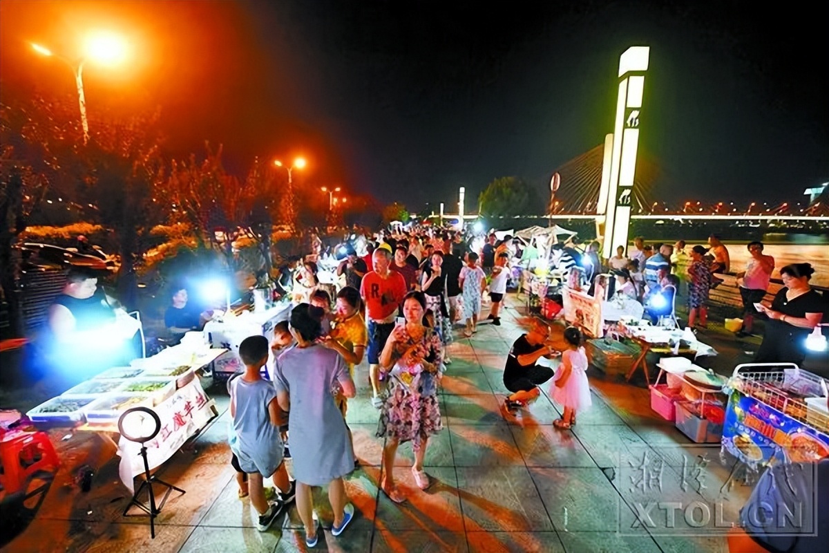 在河东湘江风光带湘潭三大桥与铁路桥之间,一个“后备厢”夜市悄然兴起。华灯初上,有这样一群人(他们白天上班,晚上则是夜市老板)打开汽车后备厢,或做着手工咖啡,或调制着冰凉粉……摊位上亮起点点灯光,璀璨耀眼。网红小吃和冷饮是这里的消费亮点,吸引了许多市民散步、消费。