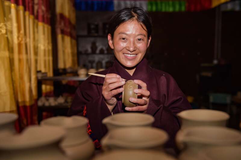 近年来,壤塘县立足“非遗”优势,以文化为魂,以文聚人、以文化人、以文兴业,创建了非遗传习所46个,3000余名农牧民从事非遗生产性保护,画出了民族团结“同心圆”。