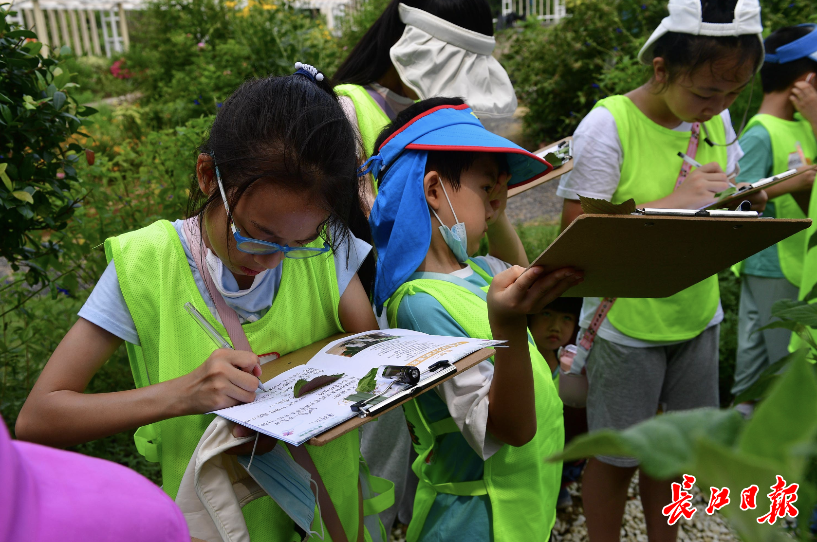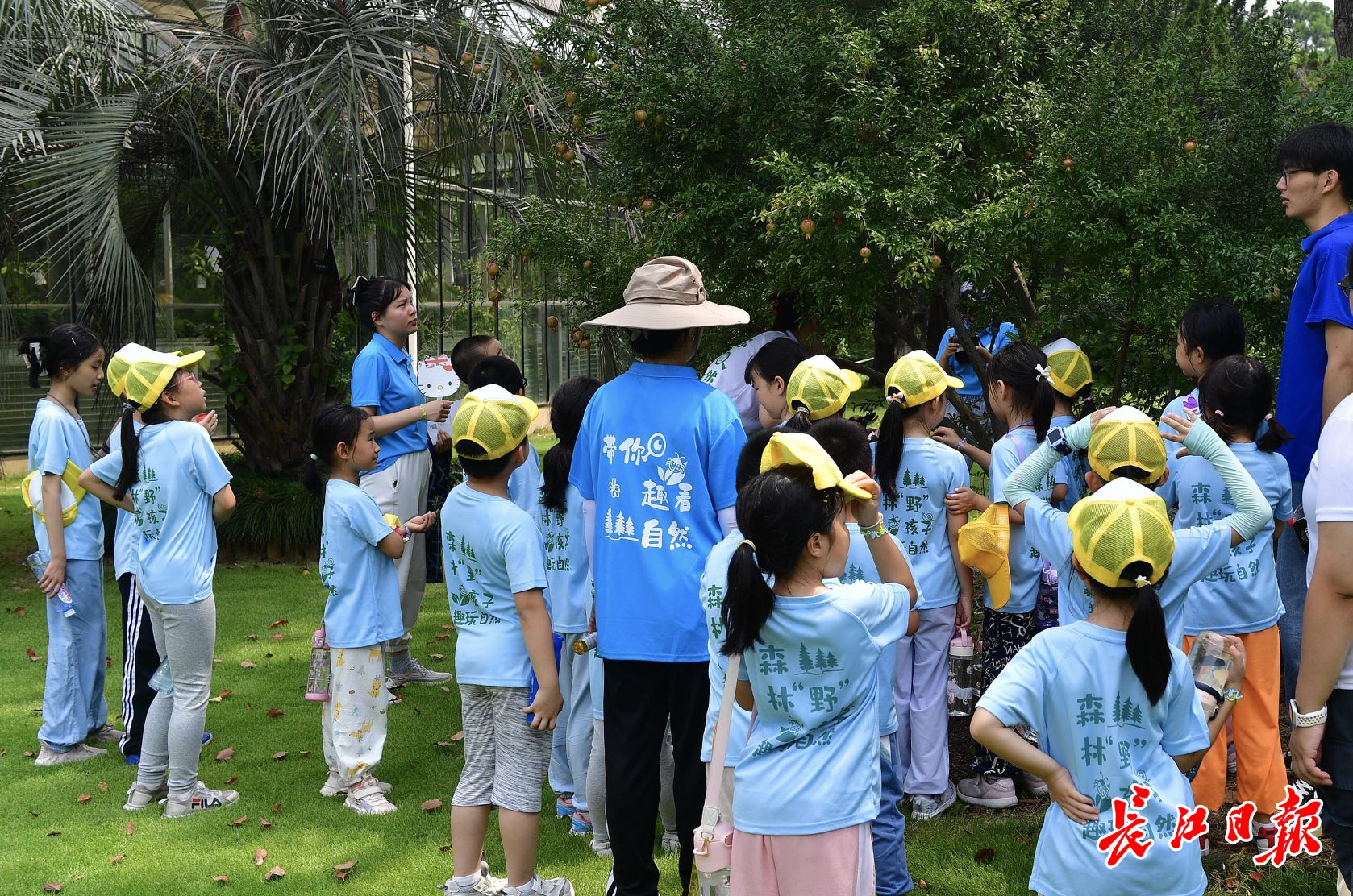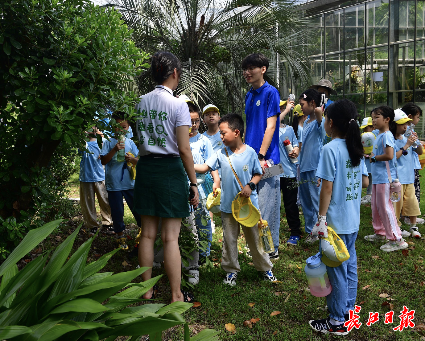 长江日报大武汉客户端7月19日讯 7月19日,武汉植物园里游客不多,但是“组团”前来学习的大学生和小学生队伍络绎不绝。武汉大学生物科学专业的学生跟随老师在植物园里进行暑期野外实践活动,学习植物知识。几队参加暑期自然夏令营活动的小学生在老师的带领下,认识薄荷、紫苏、薰衣草等芳香植物,采集石榴、海桐、凌霄等植物果实标本,现场制作植物笔记,身临其境认识植物,了解自然。