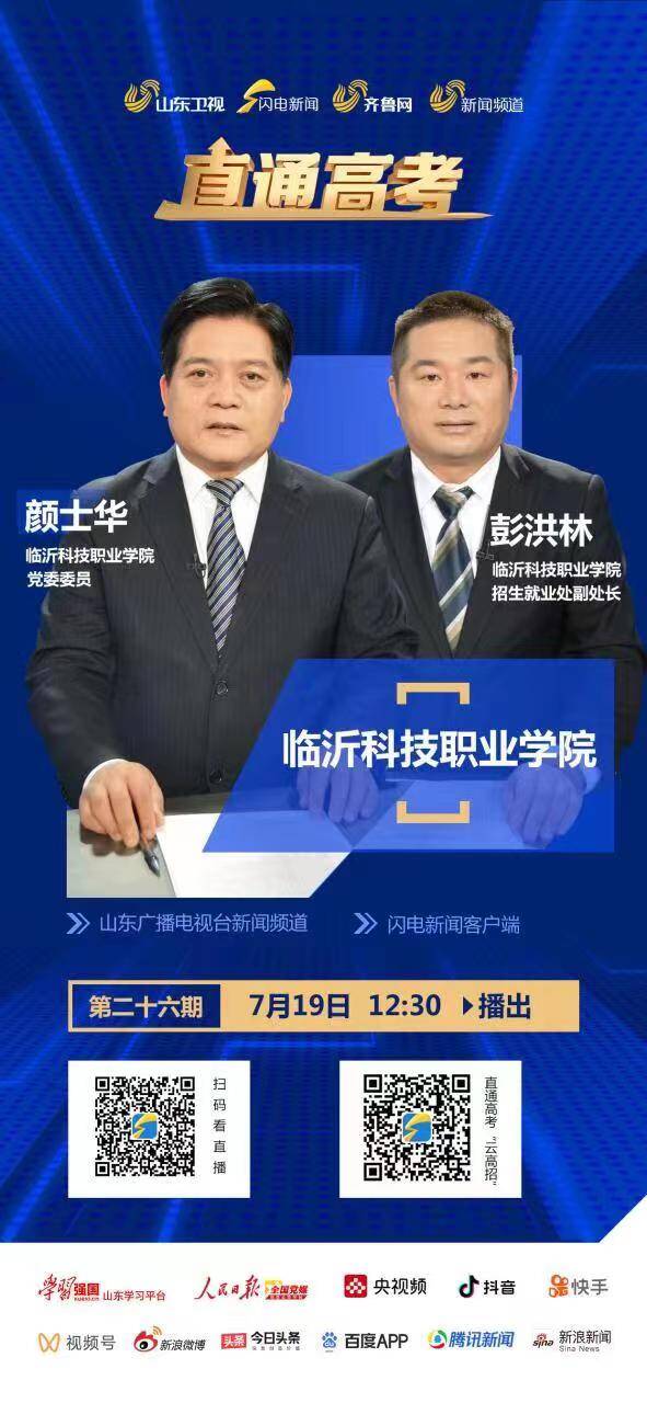齐鲁网·闪电新闻7月19日讯 为精准服务保障考生在志愿填报过程中的各类需求,用权威信息帮助考生和家长做出最正确的选择,2022年,山东广播电视台《直通山东高考》全面升级,联合“学习强国”山东学习平台共同推出《直通高考》访谈栏目,本期受邀嘉宾来自临沂科技职业学院。
