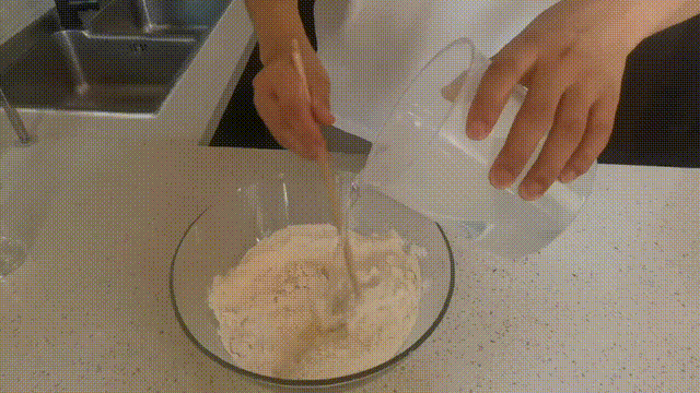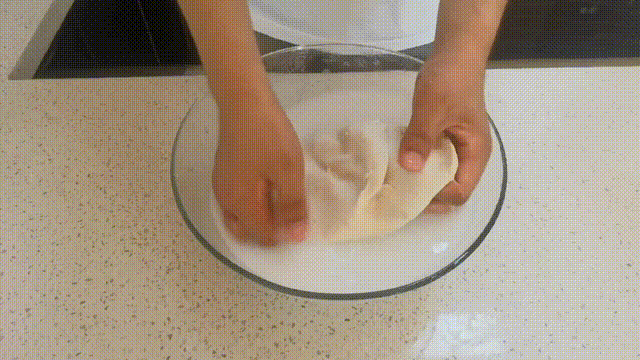 1、250g高筋面粉、1g盐和125g清水,碗内搅拌成絮状,再揉成光滑的面团,包上保鲜膜,醒发30分钟。