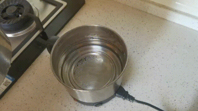 9、不需要刷油,直接倒一勺面浆到凉皮锣锣上,摇晃锣锣至面浆完全铺平,放入锅中盖上透明锅盖,加最多的水,透过玻璃锅盖观察凉皮,中途不能掀锅盖。中大火3-4分钟。