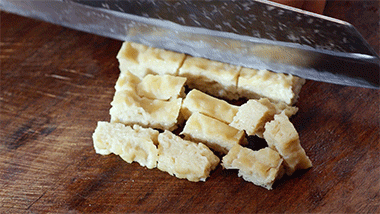 4、面浆用来做凉皮,剩下的面筋蒸好后切小块,作为配菜拌在凉皮里,是极美味的。