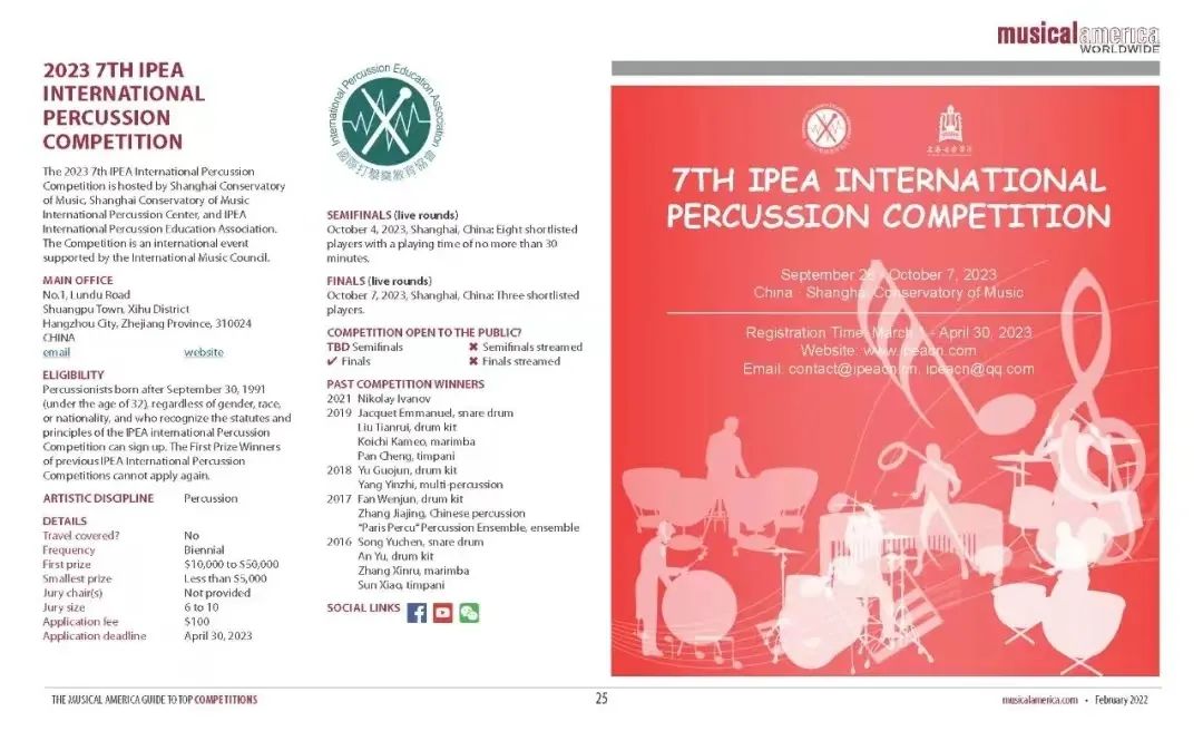 IPEA比赛被《美国音乐年鉴》列入“2023全球顶尖音乐赛事指南”