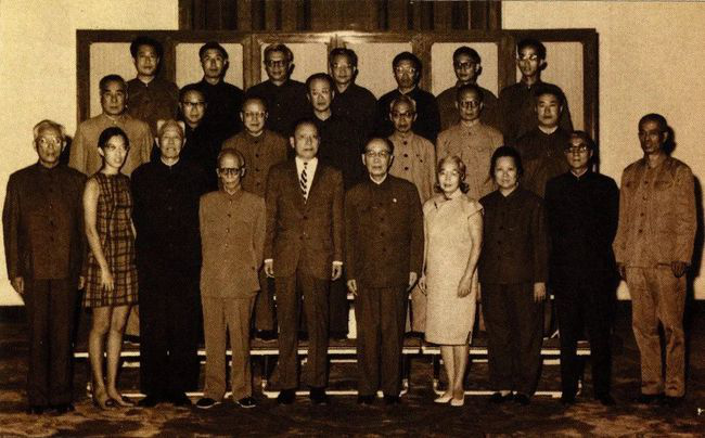 陈省身第一次访问新中国,与中科院领导及学者合影。前排左起,周培源、陈璞、吴有训、竺可桢、陈省身、郭沫若、郑士宁、于立群、章文晋、郭梦笔;中排左起,岳岱衡、张维、钱伟长、段学复、江泽涵、王竹溪、李光泽;后排左一朱水行,左三起张素诚、吴文俊、田方增、黄秀高(1972年9月16日)
