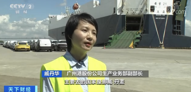 广州港股份公司生产业务部副部长 戚丹华:目前从广州港出口的新能源汽车品牌已经有三十几家,主要去的国家是挪威、丹麦、荷兰这些欧洲国家。