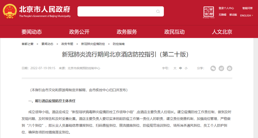 《指引》明确指出,要严格控制聚集性活动,按照“非必要不举办、不承办”原则,全市酒店不承办婚宴、生日宴、团体宴等群体性聚餐活动(政策调整的,另行通知);全市酒店继续从严从紧控制会议、培训、论坛等聚集性活动(政策调整的,另行通知);核心区酒店继续暂停承办会展、论坛、培训等聚集性活动(政策调整的,另行通知)。