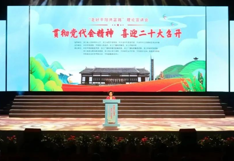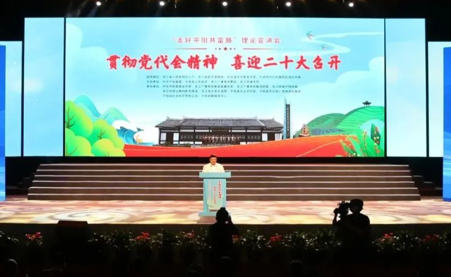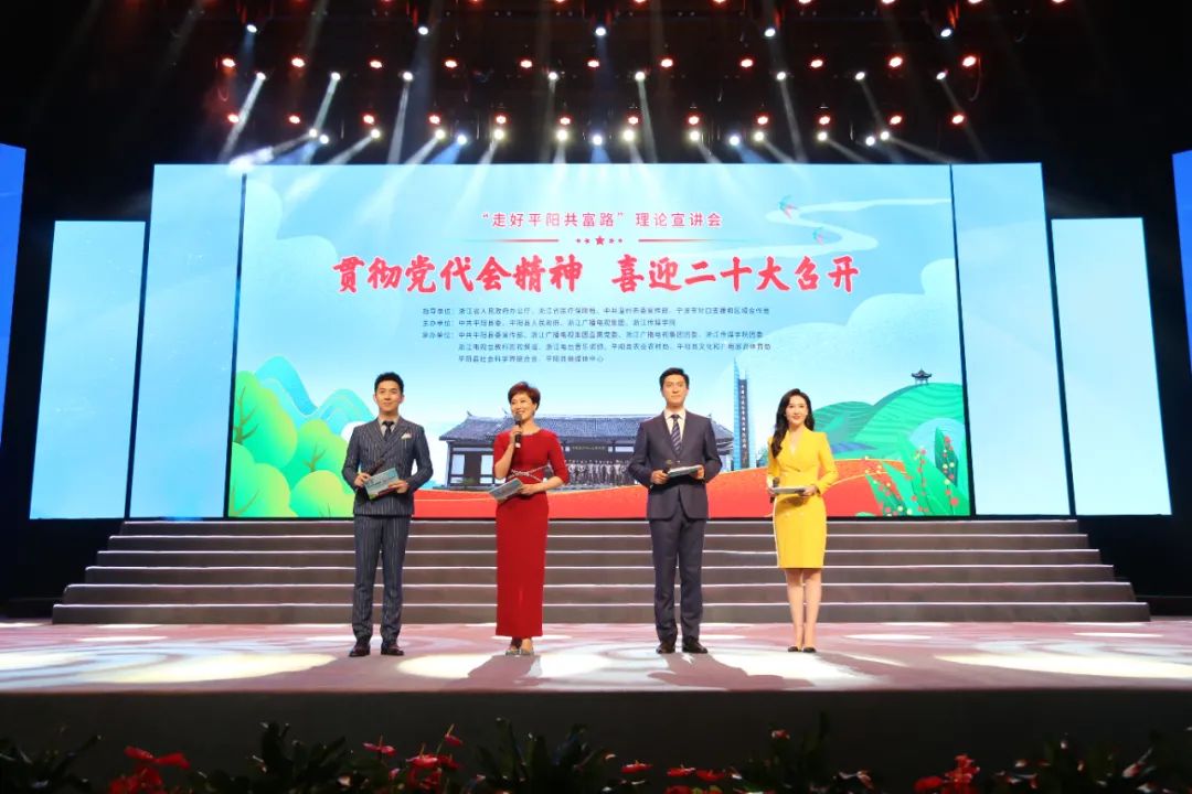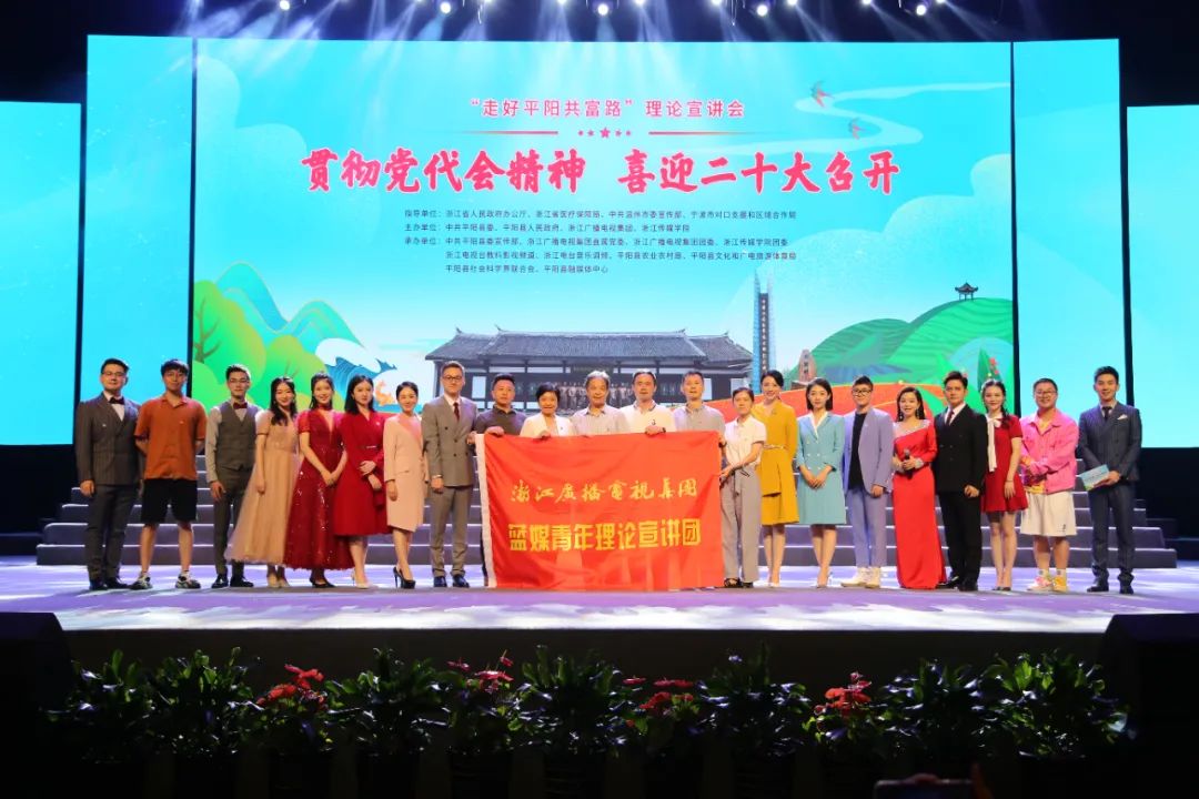 7月19日下午,由中共平阳县委、平阳县人民政府、浙江广播电视集团、浙江传媒学院联合主办的“走好平阳共富路”浙江广电“蓝媒”青年理论宣讲会特别节目在平阳艺术中心大剧院隆重举行。
