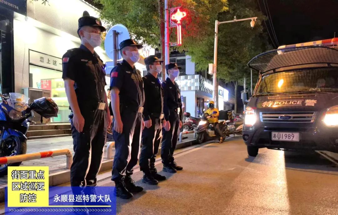 永顺公安扎实开展巡防防控工作,采取车巡、步巡相结合方式分时段加大对街面、广场、夜市摊点等人员密集区域的巡查力度,确保“白天见警车、晚上见警灯”,进一步提高见警率和管事率。
