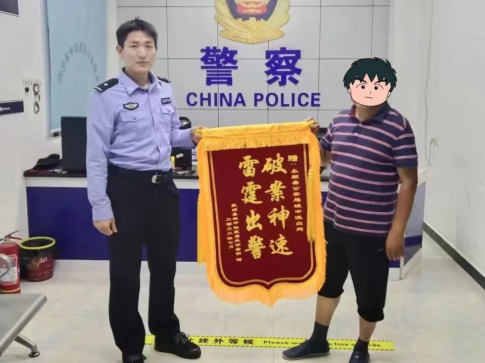 ▲7月1日,一名群众感谢县公安局民警快速破案