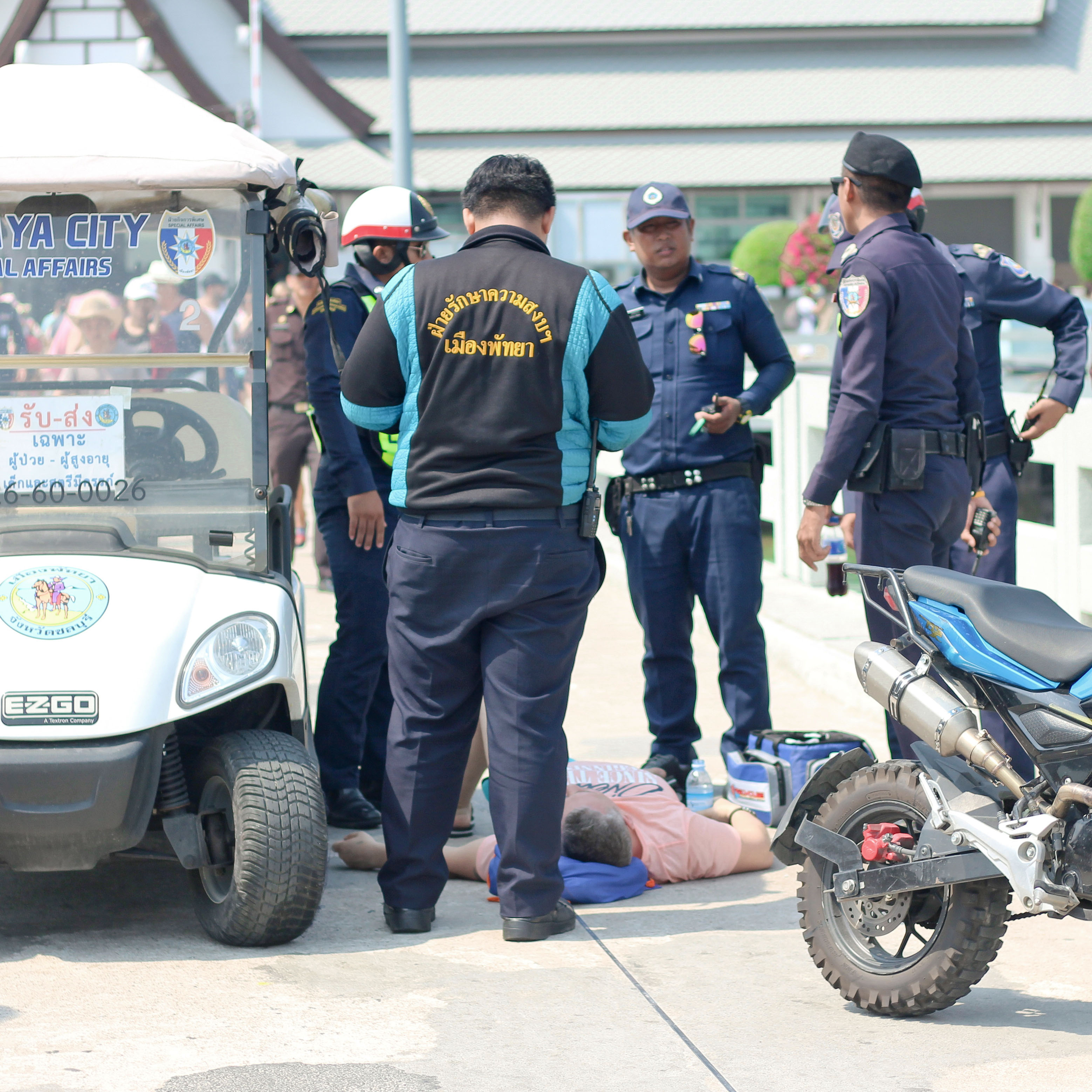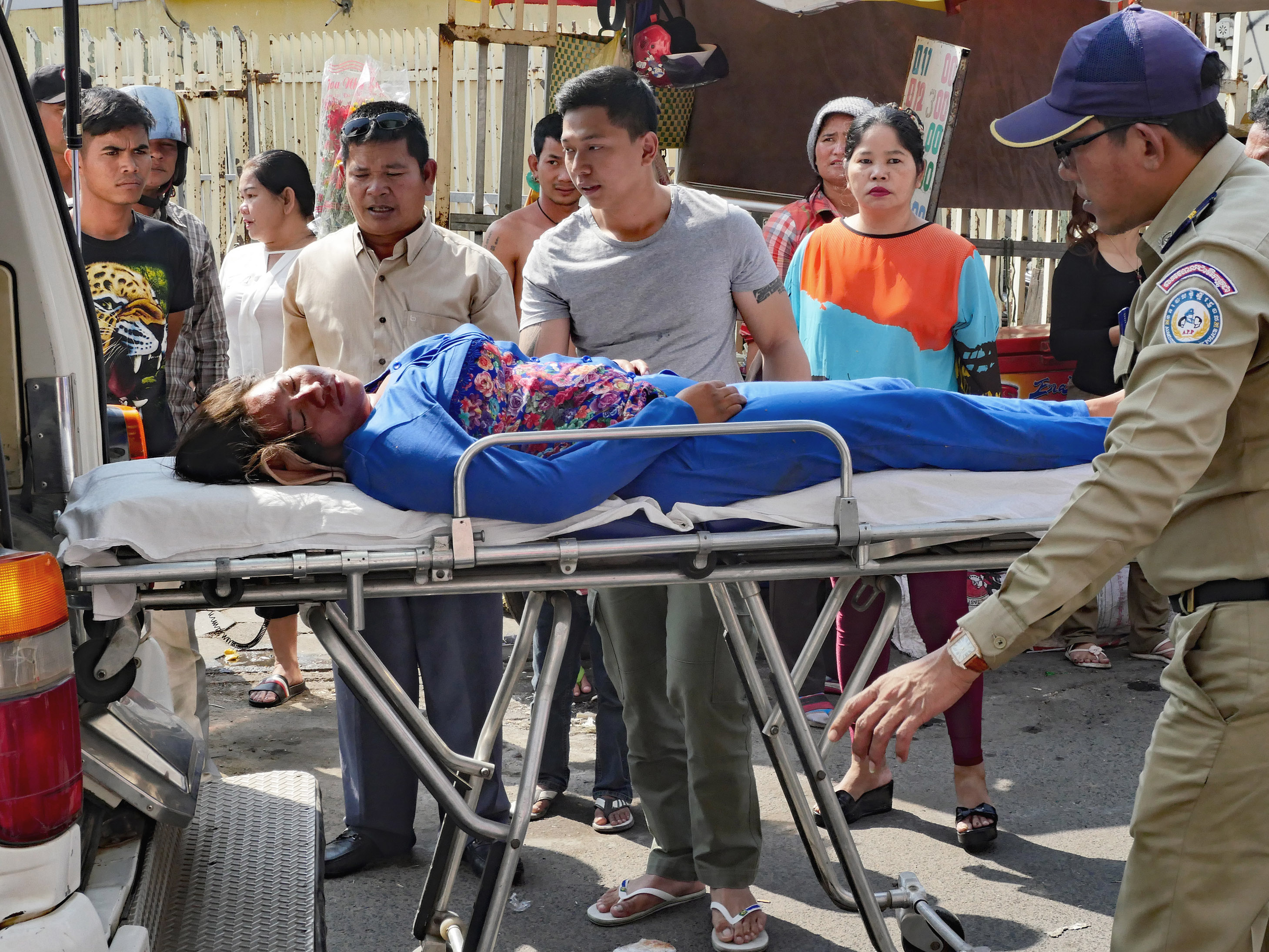 但因地面太烫忍痛爬起,到树荫下等救护车▼