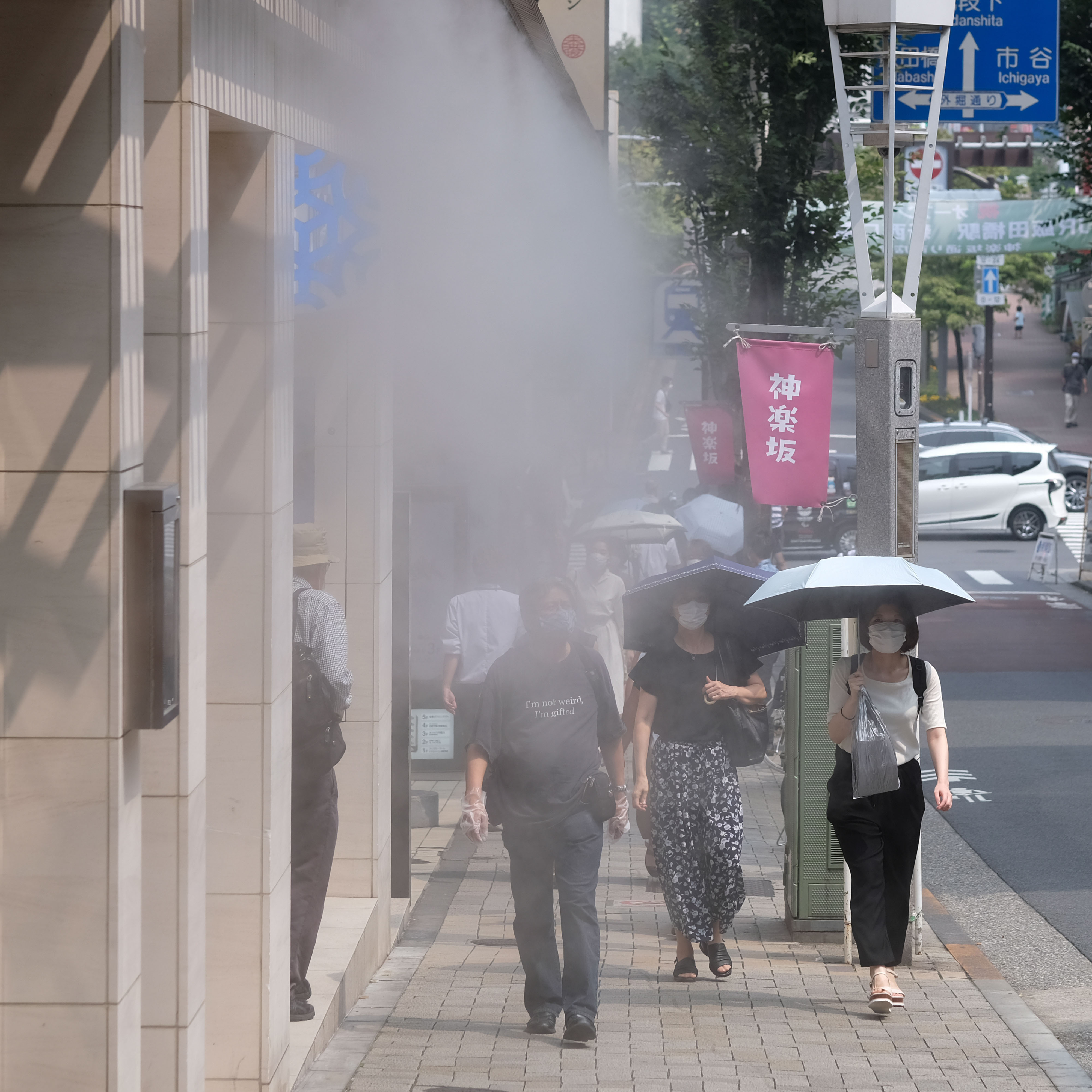 必要时,可以在户外喷洒水雾,给路人降温