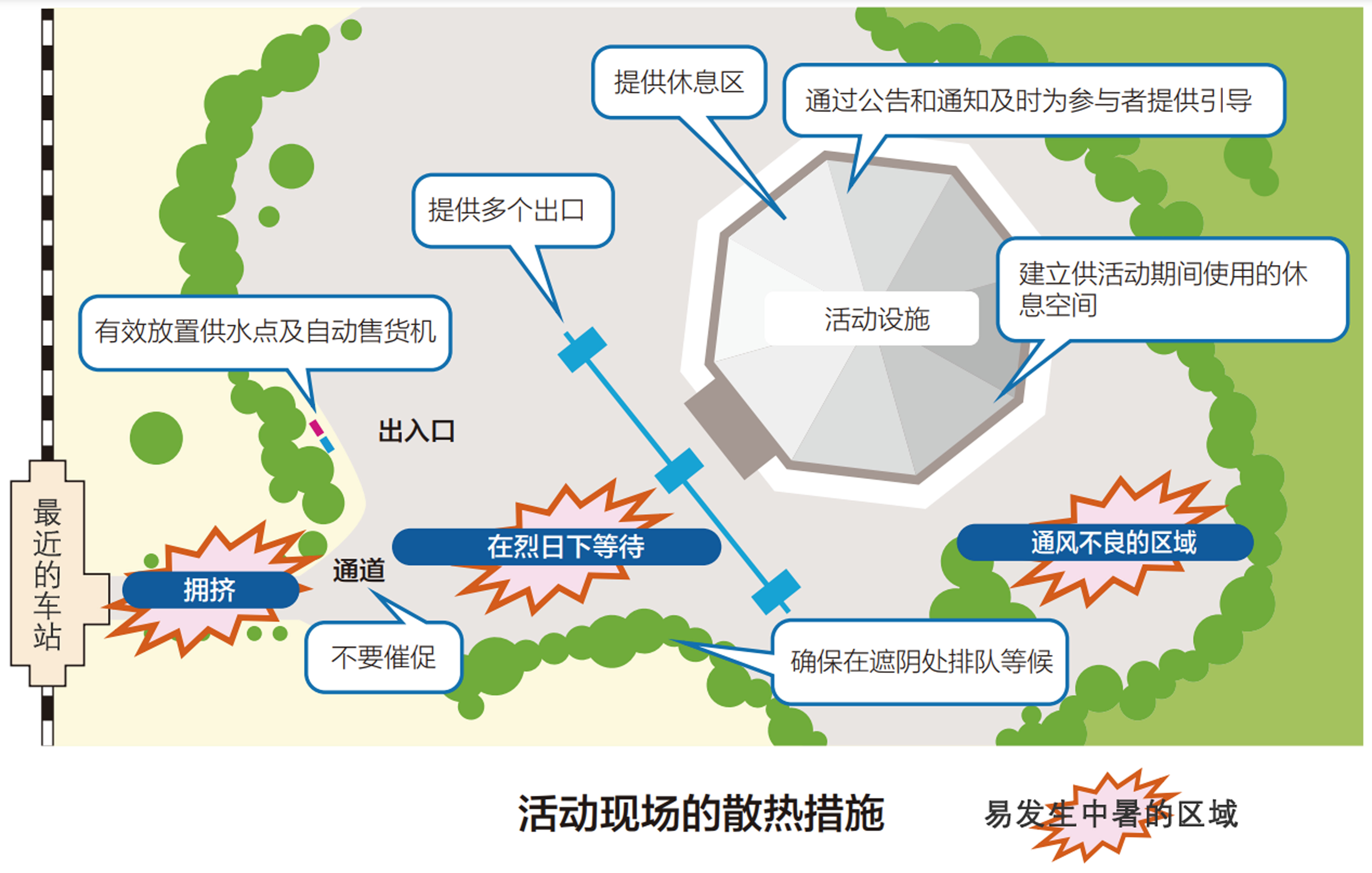 举办方应采取相应措施,防止参与者中暑▼