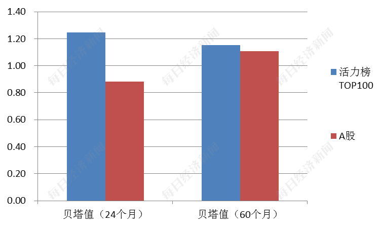如前所述,活力榜TOP100的总体投资风险低于A股上市公司,当它们的系统性风险反而大于A股上市公司,意味着其非系统性风险进一步低于后者。