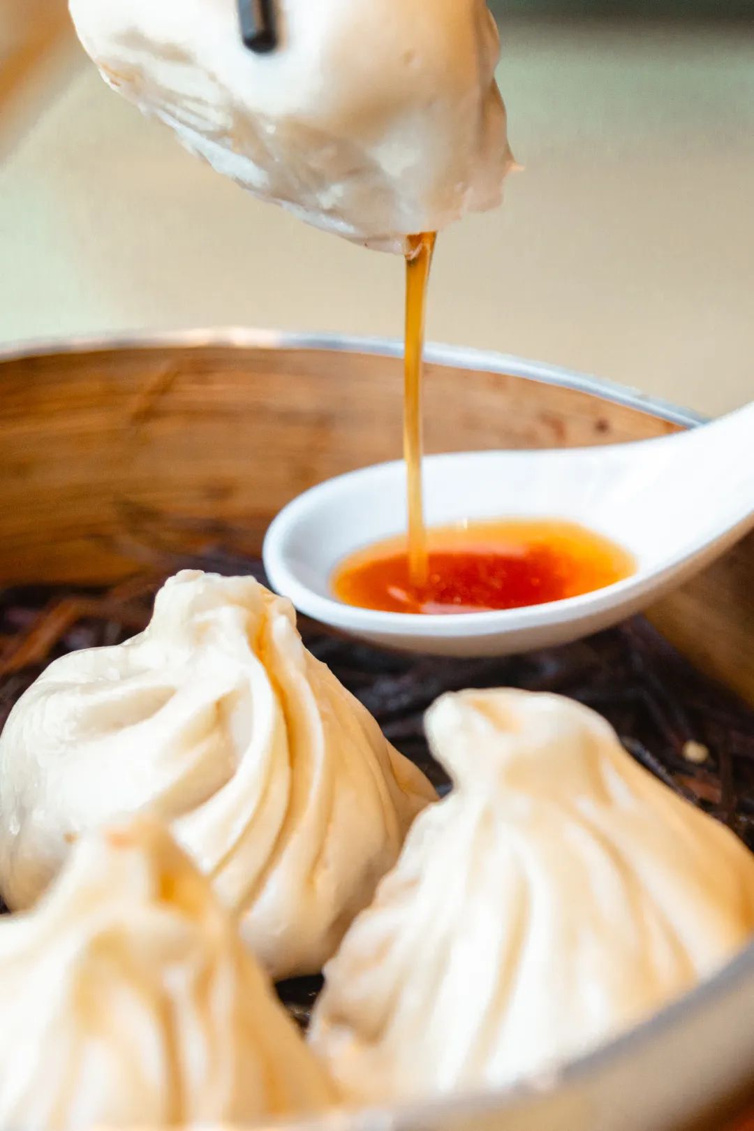 小笼包依旧一笼四只,2022已经涨到12块一笼了,咬开外皮汁水四溢,一颗大肉丸吃得人心潮澎湃。